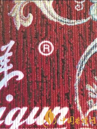看正面注冊(cè)商標(biāo):真煙小盒正面注冊(cè)商標(biāo)圖案清晰明亮,外圍輪廓柔和,為完整的圓形,無鋸齒、無斷裂;假煙小盒正面注冊(cè)商標(biāo)圖案較為暗淡,外圍輪廓模糊,與背景圖案交疊錯(cuò)印。
