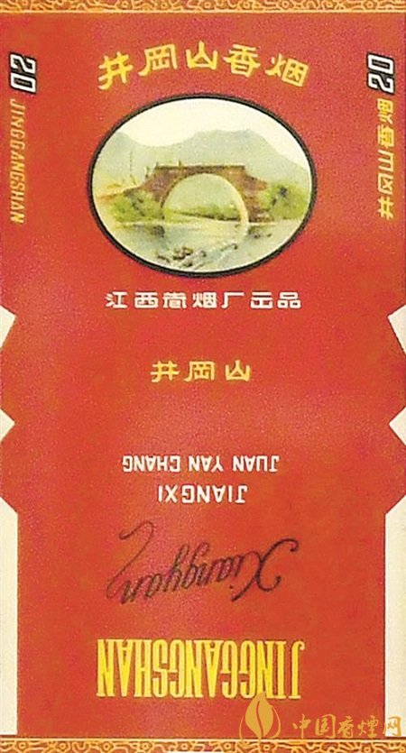 “井岡山”(上世紀(jì)50年代出品) 1958年,“井岡山”于江西南昌卷煙廠創(chuàng)牌。因誕生于中國革命的搖籃井岡山而得名。 煙標(biāo)設(shè)計最初以“紅軍會師橋”“黃洋界保衛(wèi)戰(zhàn)紀(jì)念碑”為元素,上世紀(jì)70年代以后以“井岡山五指峰”為主元素。 井岡山是中國革命的搖籃。那一時期留給后人最為寶貴的財富,就是跨越時空的井岡山精神,這一精神在煙標(biāo)中得到體現(xiàn)。