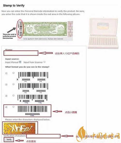 很多茄友都知道每盒古巴雪茄外盒上都有防偽條碼,從2009年第八代防偽標(biāo)開(kāi)始古巴哈伯納斯煙草公司就開(kāi)始增加了13位產(chǎn)品編碼,每個(gè)封條上都有一個(gè)單獨(dú)的條形碼,以便茄客跟蹤從雪茄生產(chǎn)到世界上每一個(gè)哈瓦那獨(dú)家經(jīng)銷商銷售的每一盒雪茄產(chǎn)品??梢酝ㄟ^(guò)古巴哈伯納斯官網(wǎng)進(jìn)行產(chǎn)品真?zhèn)尾樵兞恕?/p>