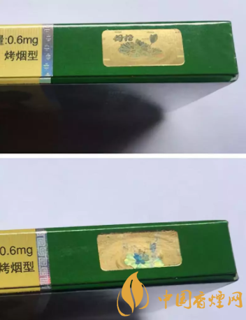 真品卷煙鐳射防偽標志中的圖案清晰、完整, “荷花”兩字立體感強,用放大鏡觀察可看到清晰的“HEHUA”微縮字體;假煙鐳射防偽標志中的圖案模糊且不完整,“荷花”兩字粗糙、死板,用放大鏡觀察“HEHUA”微縮字體很模糊。