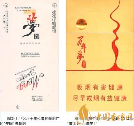 如新邵卷煙廠的“夢”(見圖①),菏澤卷煙廠的“金夢”(見圖②),貴定、海林卷煙廠的“夢圓”(見圖③),興義卷煙廠的“夢歸”,許昌卷煙廠的“夢幻”,安陽、當(dāng)陽卷煙廠的“藍夢”,蓬安卷煙廠的“藍的夢”,綿陽卷煙廠的“九寨溝夢幻”,阜陽卷煙廠的“東方夢”,銅仁卷煙廠的“夢中情”,太原卷煙廠的“夢佳麗”,紅安卷煙廠的“夢之花”,四平卷煙廠的“夢妮”,鳳凰卷煙廠乾州分廠“夢斯”等。另一類是取材于古代文學(xué)作品和傳說。如南京卷煙廠的“夢都”,新晃卷煙廠的“紅樓夢”,鐘山卷煙廠的“夢”,廣水卷煙廠的“黃粱夢”,長春卷煙廠的“夢仙草”,許昌卷煙廠的“夢蝶”等。