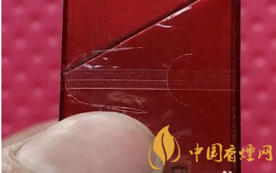 第三步:看紅旗渠(黃金葉)牌香煙的最外面的透明包裝紙。在開封處的可以清楚的看到刀鋒留下的痕跡,開封時應該是輕松的將透明包裝撕開,撕開后的包裝的包裝條應該是很整齊的邊。