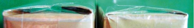 2.看小盒底部包裝紙,真煙包裝紙折角處呈現(xiàn)弧狀,且間隙較大;而假煙的底部包裝紙折角處呈銳角,而且間隙比較小。肉眼可直接對(duì)比出來(lái)。